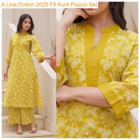 ए लाइन कॉटन 2025 एफएफआई कैम्ब्रिक कुर्ती प्लाज़ो सेट थोक मूल्य