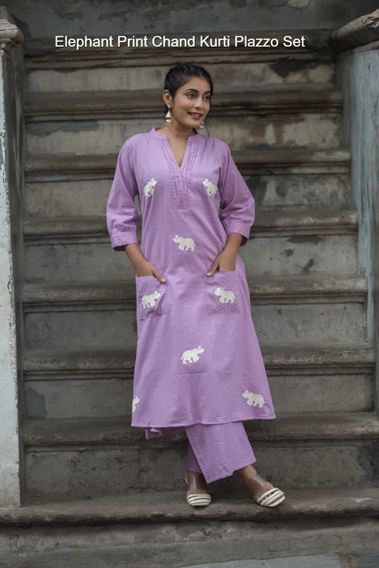 हाथी प्रिंट चंद जयपुरी कुर्ती प्लाज़ो सेट आपूर्तिकर्ता