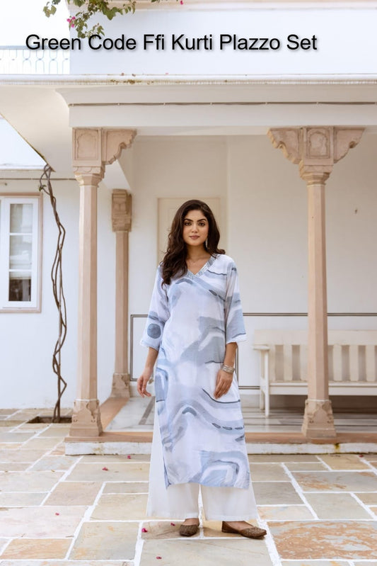 ग्रीन कोड एफएफआई रेयॉन कुर्ती प्लाज़ो सेट सप्लायर अहमदाबाद