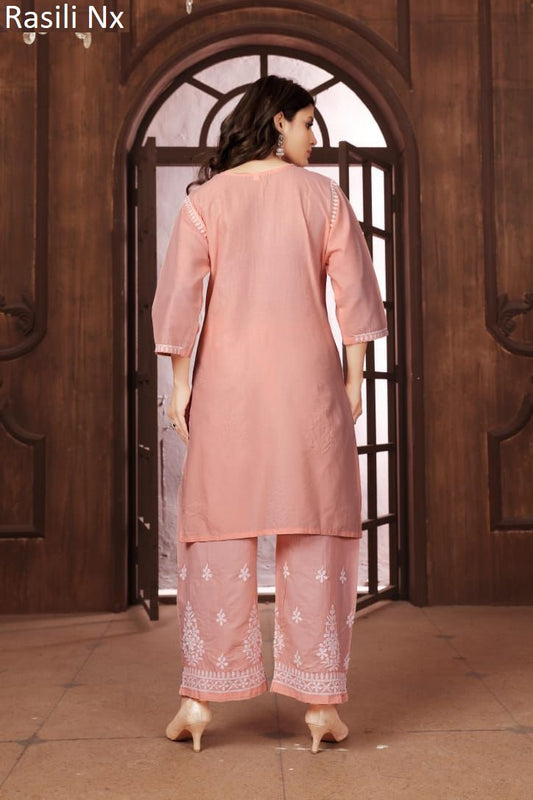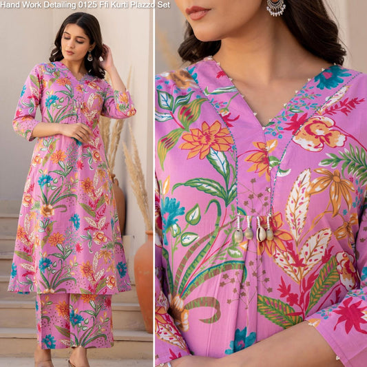 हैंड वर्क डिटेलिंग 0125 Ffi कॉटन कैम्ब्रिक कुर्ती प्लाज़ो सेट थोक मूल्य