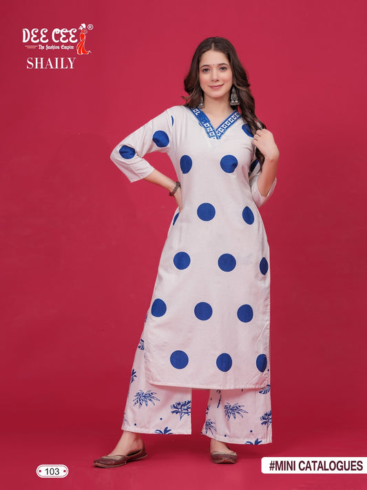 विक्टोरिया एनएक्स 03 ब्लू हिल्स रेयॉन 14 किलो कुर्ती प्लाज़ो सेट थोक विक्रेता गुजरात