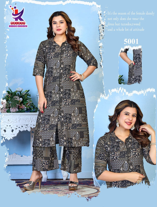 P 747-748 जर्नी डिज़ाइन रेयॉन कुर्ती प्लाज़ो सेट थोक मूल्य