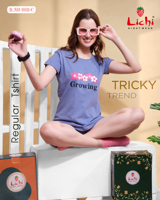 डिज़ाइन 908 लीची होज़री कॉटन महिला टीशर्ट थोक विक्रेता भारत