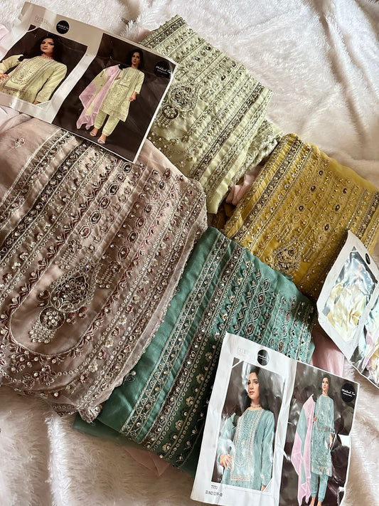 123-रंगों वाले सेरीन ऑर्गेंजा पाकिस्तानी सलवार सूट