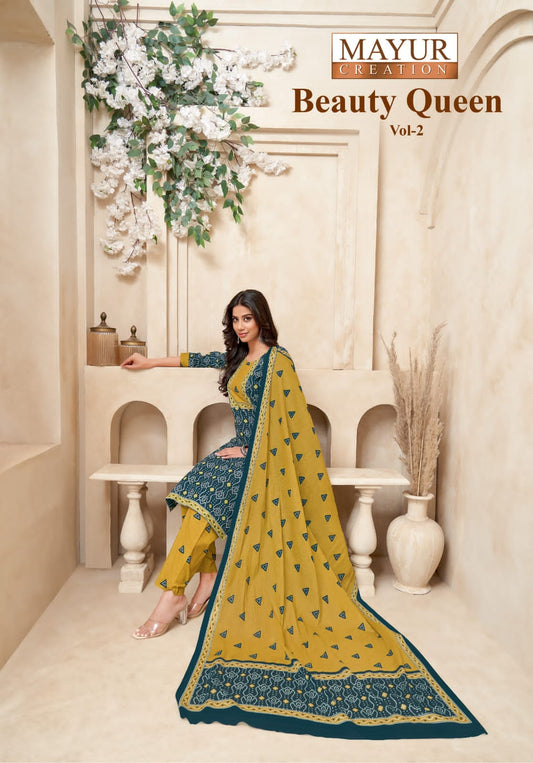 ब्यूटी क्वीन वॉल्यूम 2 मयूर क्रिएशन शुद्ध कॉटन रेडीमेड कॉटन पैंट सूट थोक मूल्य