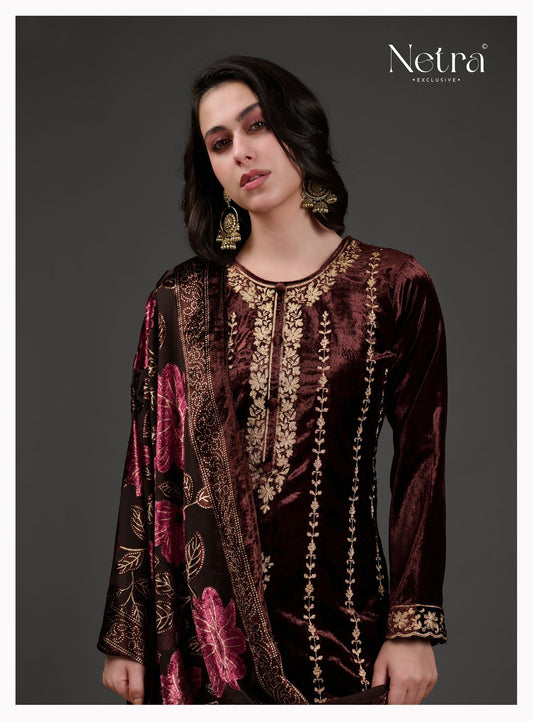 लावण्या नेत्रा वेलवेट सूट थोक मूल्य पर