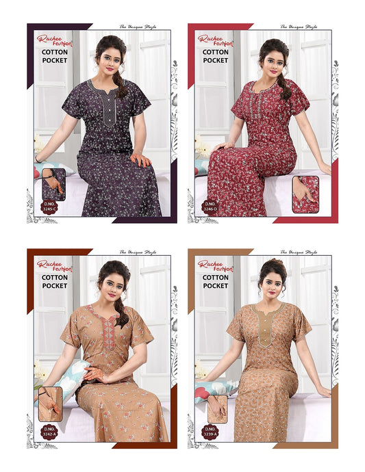 डिज़ाइन 3218-3221 रुची फैशन कॉटन नाइट गाउन सप्लायर