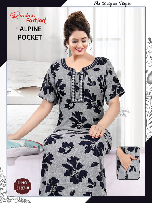 डिज़ाइन 3186-3187 रुची फैशन अल्पाइन नाइट गाउन निर्माता भारत