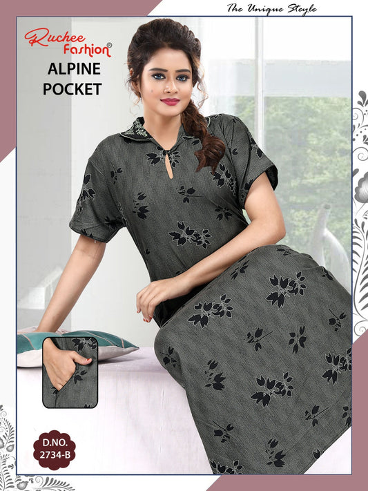 अल्पाइन पॉकेट 100325 रुची फैशन नाइट गाउन सप्लायर अहमदाबाद