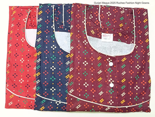 गुर्जरी मेग्या 2025 रुचि फैशन नाइट गाउन थोक विक्रेता गुजरात