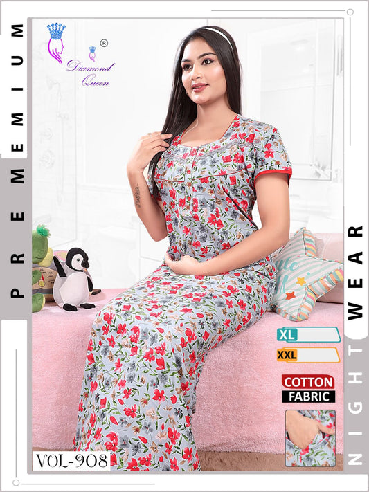 908-909 डायमंड क्वीन कॉटन नाइट गाउन निर्यातक गुजरात