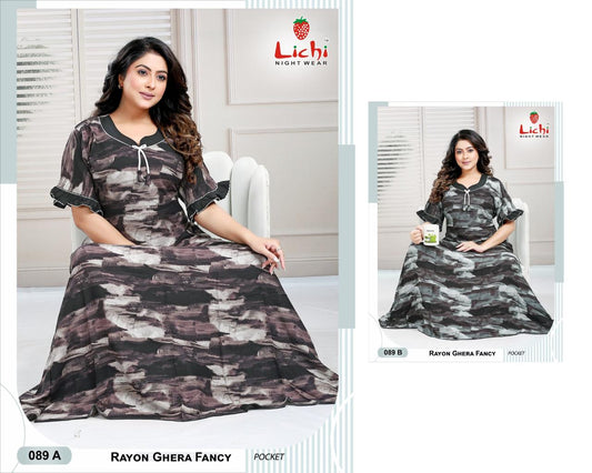 डिज़ाइन 86-90 लीची रेयॉन नाइट गाउन थोक विक्रेता भारत