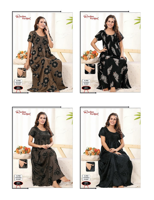 स्मोकिंग पॉकेट रुची फैशन अल्पाइन नाइट गाउन थोक विक्रेता गुजरात