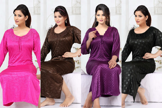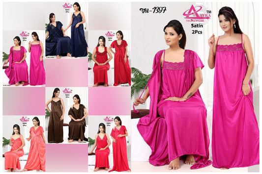 फुल स्लीव्स-202 आयरा सैटिन नाइट गाउन