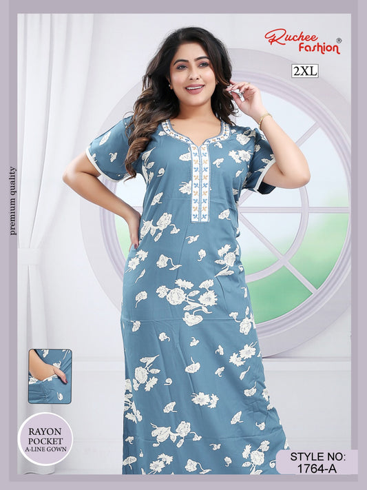 रेयॉन घेरा 1908 रुचि फैशन नाइट गाउन थोक विक्रेता गुजरात