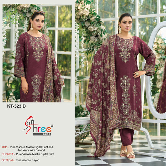 Kt 323 Shree Fabs Viscose Muslin Karachi Salwar Suits Manufacturer Ahmedabad