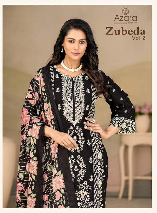Zubeda Vol 2 Radhika Fashion Azara Lawn Cotton Karachi Salwar Suits Supplier Ahmedabad