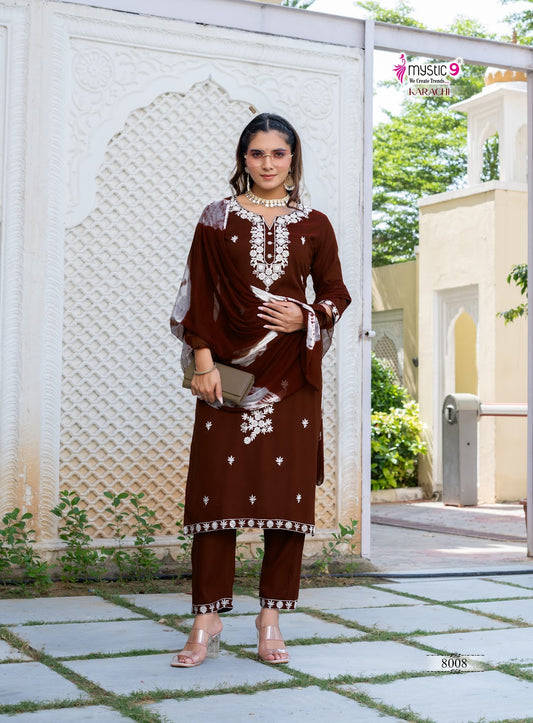 Karachi Vol 8 Mystic 9 Rayon Readymade Pant Style Suits Exporter Gujarat
