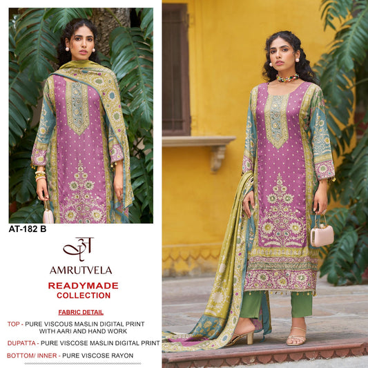 At 182 Amrutvela Viscose Muslin Pakistani Readymade Suits Wholesale Price