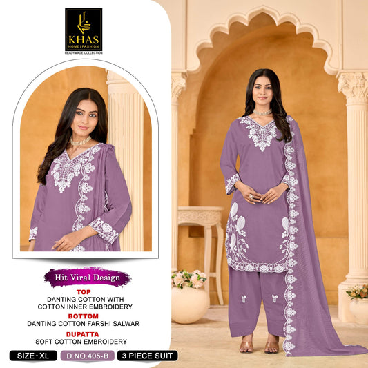 D No 405 Khas Cotton Pakistani Readymade Suits Wholesaler