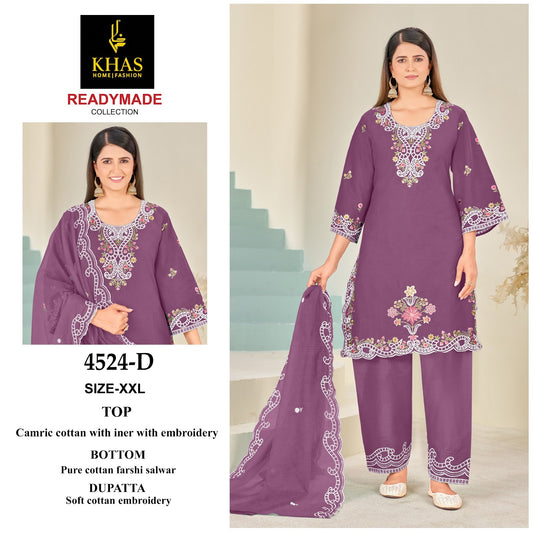 D No 4524 Khas Cambric Cotton Pakistani Readymade Suits Wholesaler