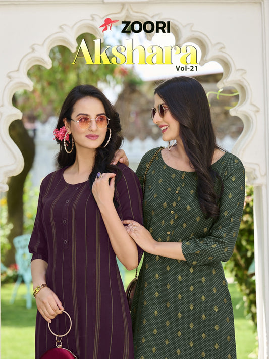अक्षरा वॉल्यूम 21 ज़ूरी रेयॉन लॉन्ग स्ट्रेट कुर्ती