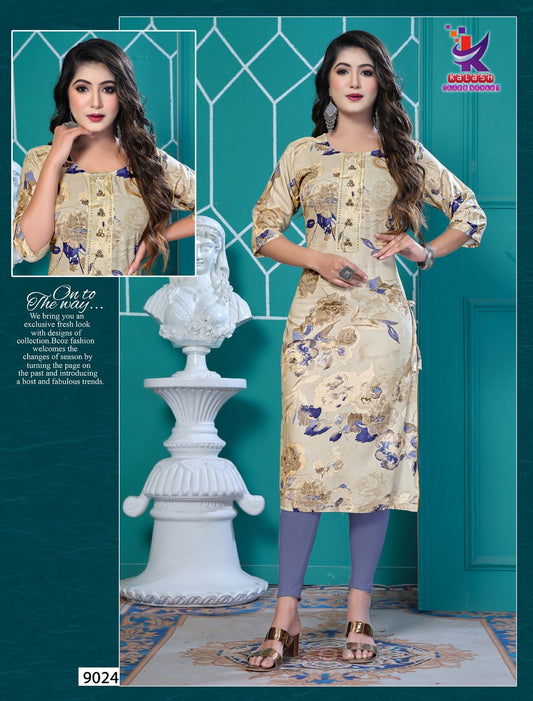 ब्यूटी गॉर्जियस-2 एमएलएम कलश लाइफस्टाइल रेयॉन 14Kg लंबी स्ट्रेट कुर्ती