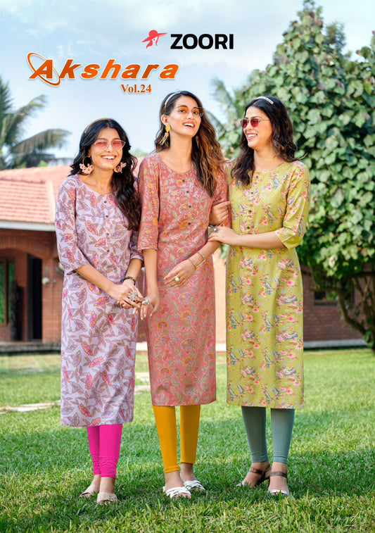 अक्षरा वॉल्यूम 24 ज़ूरी रेयॉन लॉन्ग स्ट्रेट कुर्ती