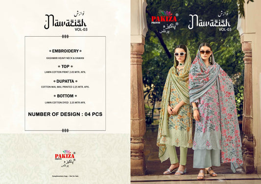 Nawazish Vol 3 Pakiza Prints Cotton Lawn Karachi Salwar Suits Exporter
