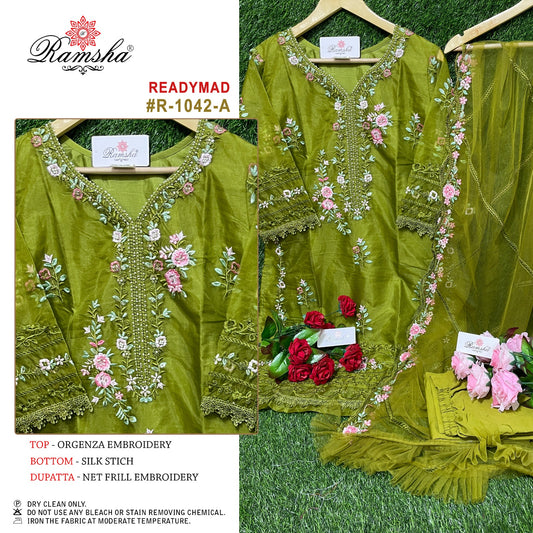 R 1042 Nx Ramsha Organza पाकिस्तानी रेडीमेड सूट