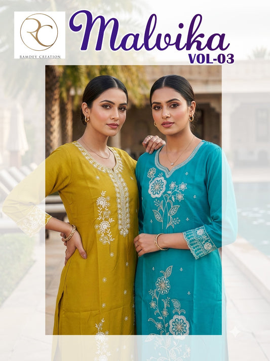 मालविका वॉल्यूम 1 रामदेव क्रिएशन रोमन सिल्क रेडीमेड पैंट स्टाइल सूट निर्माता