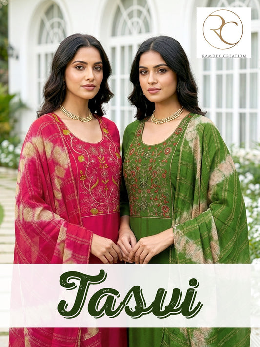 Tasvi Vol 1 Ramdev Creation Roman Readymade Pant Style Suits Manufacturer India