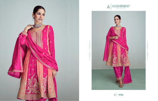 रिवाज-एनएक्स आशीर्वाद क्रिएशन सिल्क रेडीमेड सूट
