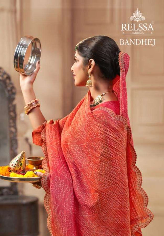 बंधेज रेल्सा फैब्रिक्स सिमर टिशू पैंट स्टाइल सूट होलसेल