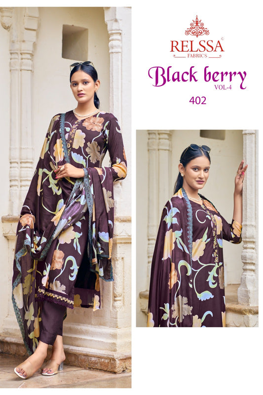 ब्लैक बेरी वॉल्यूम 4 रेल्सा फैब्रिक्स विस्कोस पैंट स्टाइल सूट निर्माता अहमदाबाद