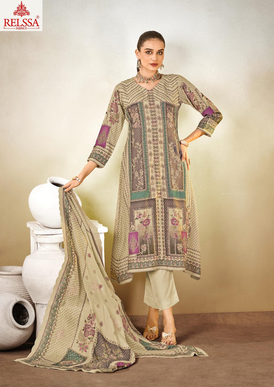 दीया वॉल्यूम 3 रेल्सा फैब्रिक्स नेचुरल क्रेप पैंट स्टाइल सूट थोक मूल्य