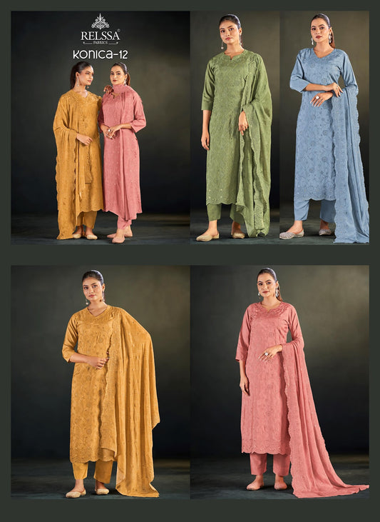 Konica Vol 12 Relssa Fabrics Pant Style Suits Supplier India