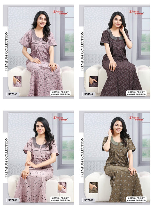 3 Buttons 1812 Ruchee Fashion Cotton Night Gowns Wholesaler Ahmedabad