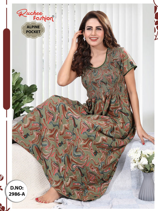 अल्पाइन पॉकेट 010425 रुची फैशन नाइट गाउन निर्यातक गुजरात