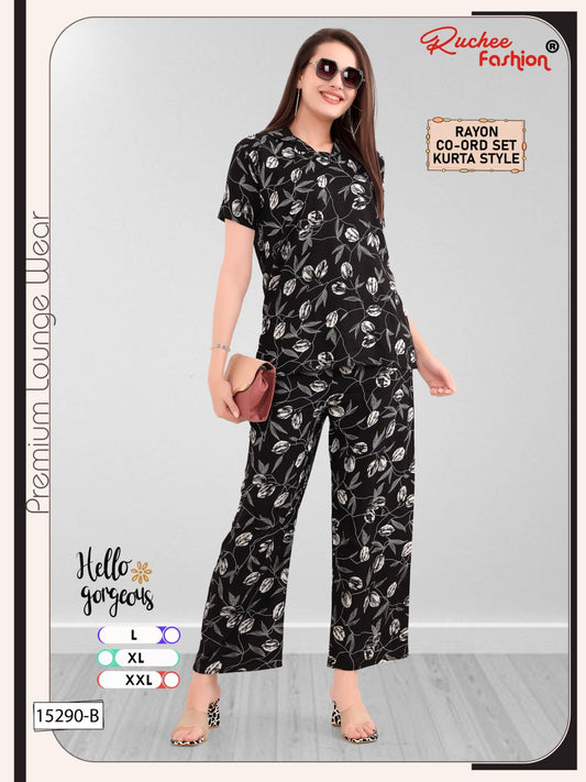 पोलो कॉलर 1007 रुची फैशन रेयॉन को-ऑर्ड सेट थोक विक्रेता भारत