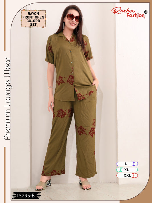 शर्ट स्टाइल 1007 रुची फैशन रेयॉन को-ऑर्ड सेट थोक मूल्य