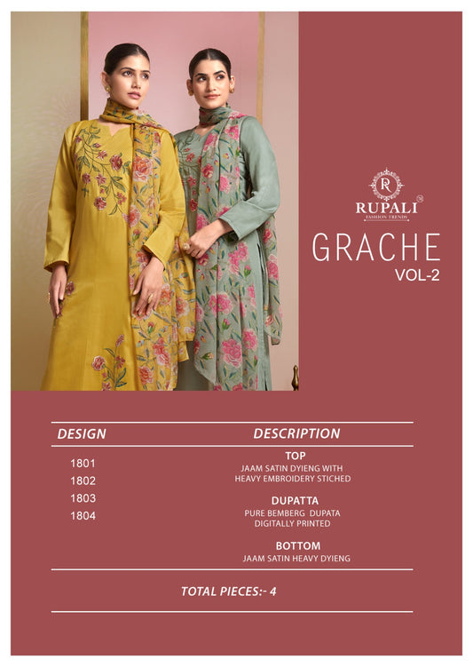 Grache Vol 2 Rupali Jaam Satin Pant Style Suit Supplier