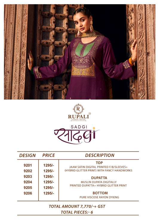 सदगी रूपाली जाम सैटिन पैंट स्टाइल सूट सप्लायर अहमदाबाद