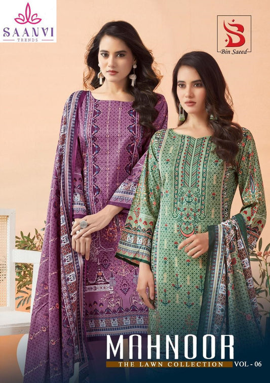 Bin Saeed Mahnoor Vol 6 Saanvi Pure Lawn Karachi Salwar Suits Wholesaler Ahmedabad