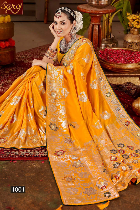केसर डोला सरोस्की खंड 5 सरोज सॉफ्ट साड़ी निर्यातक भारत