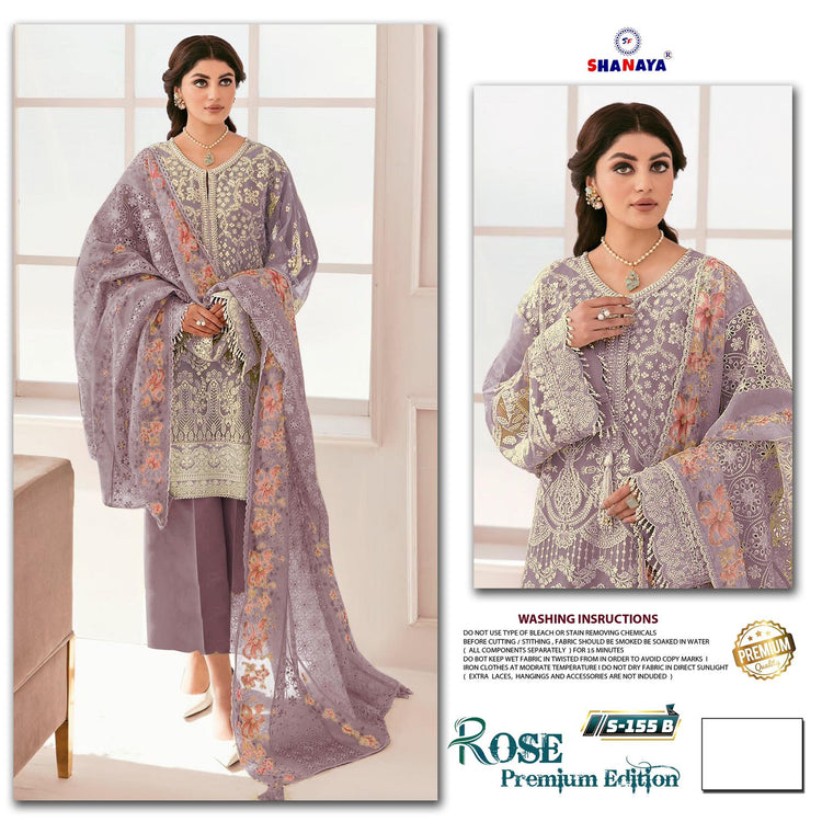एस 152 रोज़ प्रीमियम एडिशन शनाया फैशन ऑर्गेंजा पाकिस्तानी सलवार सूट