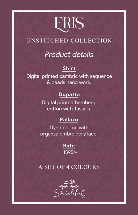 Eris 1001 Shiddat Cambric Pant Style Suits Wholesaler