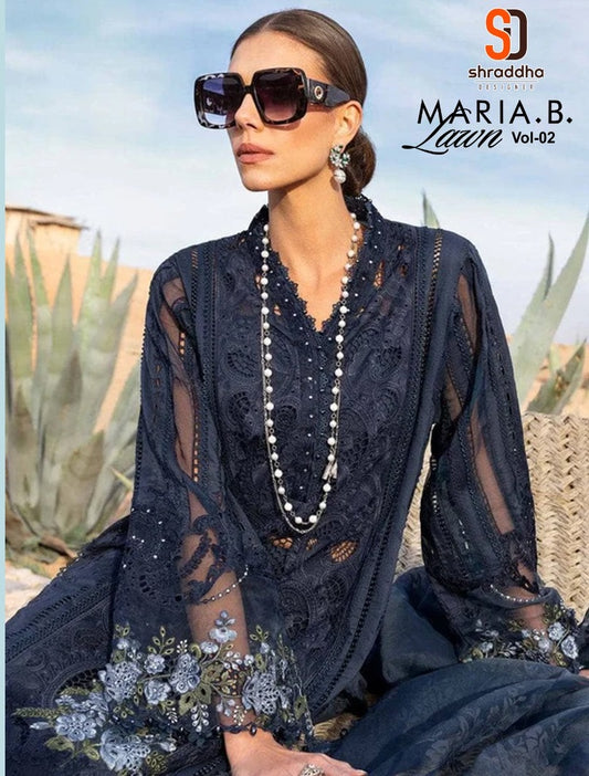 मारिया बी लॉन वॉल्यूम 2 श्रद्धा डिज़ाइनर शुद्ध कॉटन पाकिस्तानी सलवार सूट सप्लायर गुजरात