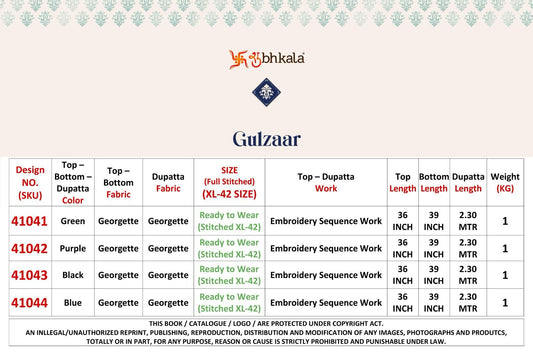 गुलज़ार 41041-41044 शुभकला जॉर्जेट रेडीमेड प्लाज़ो स्टाइल सूट थोक विक्रेता