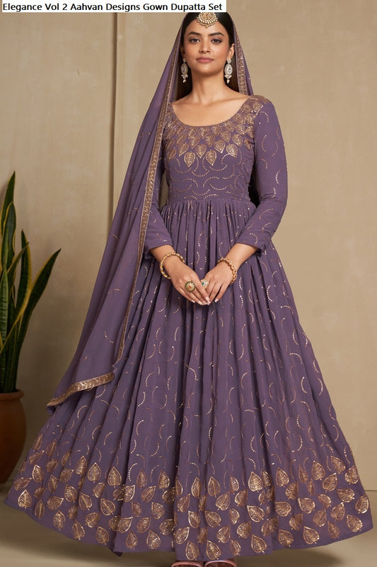 एलिगेंस वॉल्यूम 2 आहवान डिज़ाइन्स फॉक्स जॉर्जेट गाउन दुपट्टा सेट